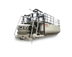 - Engine control panel positioned near the discharge boom tower for easy operation